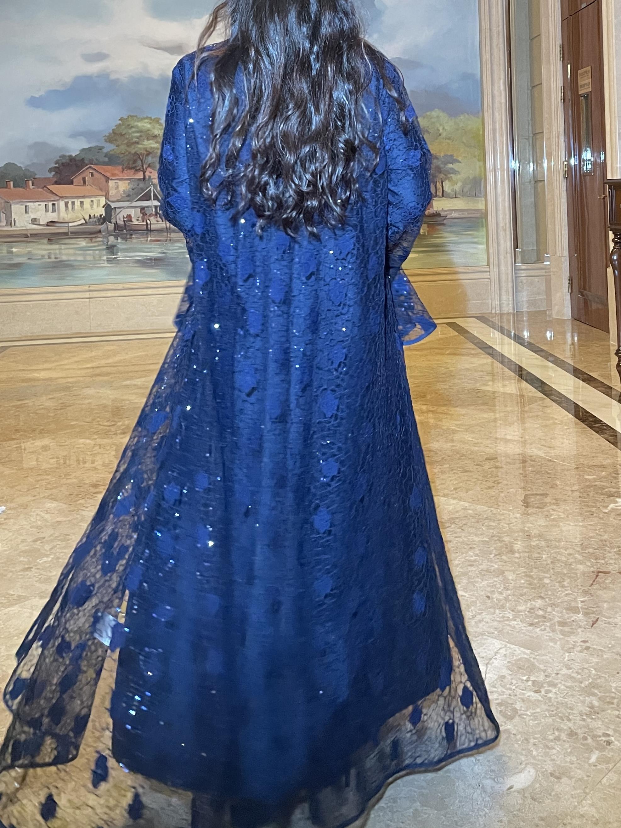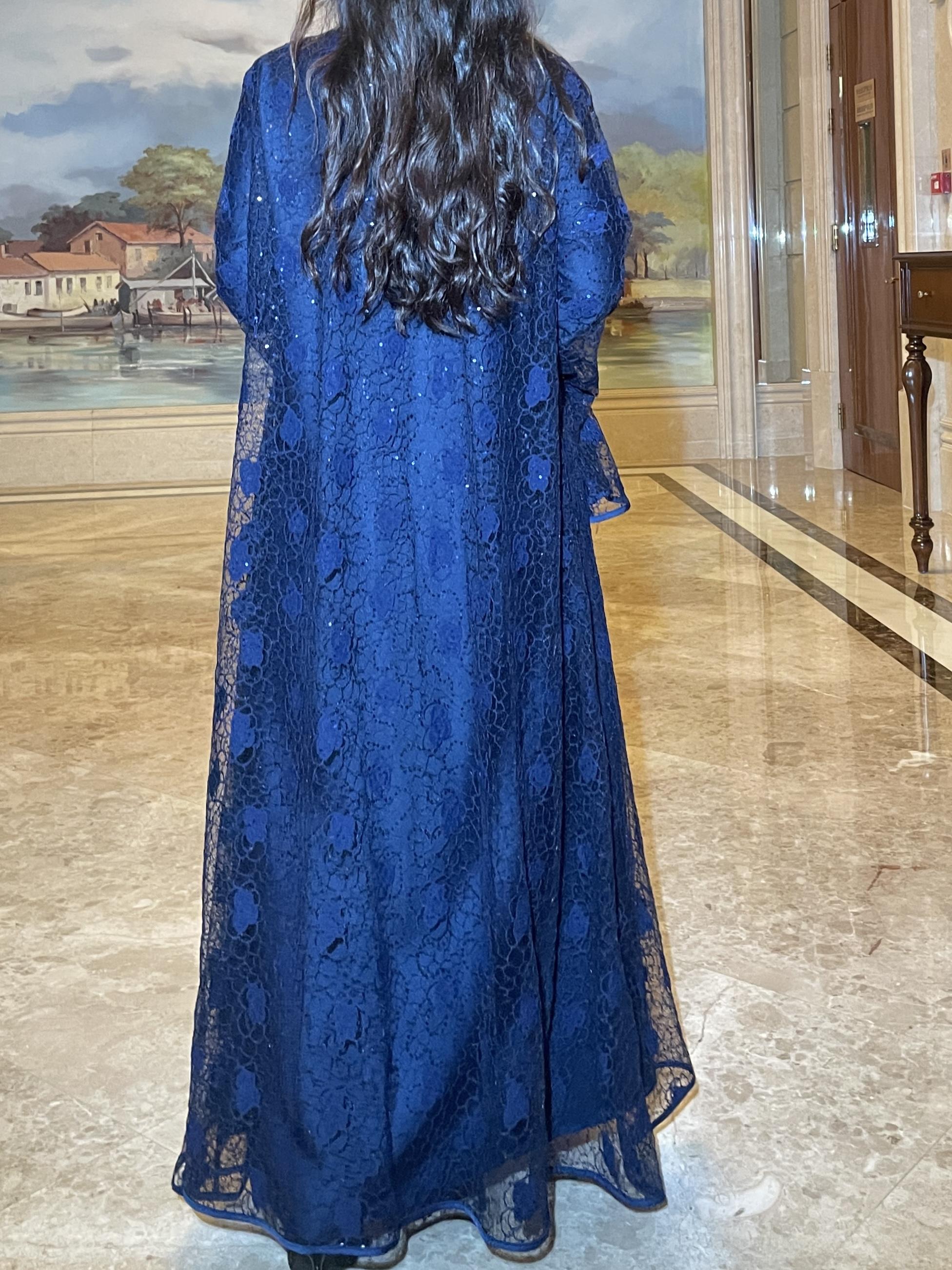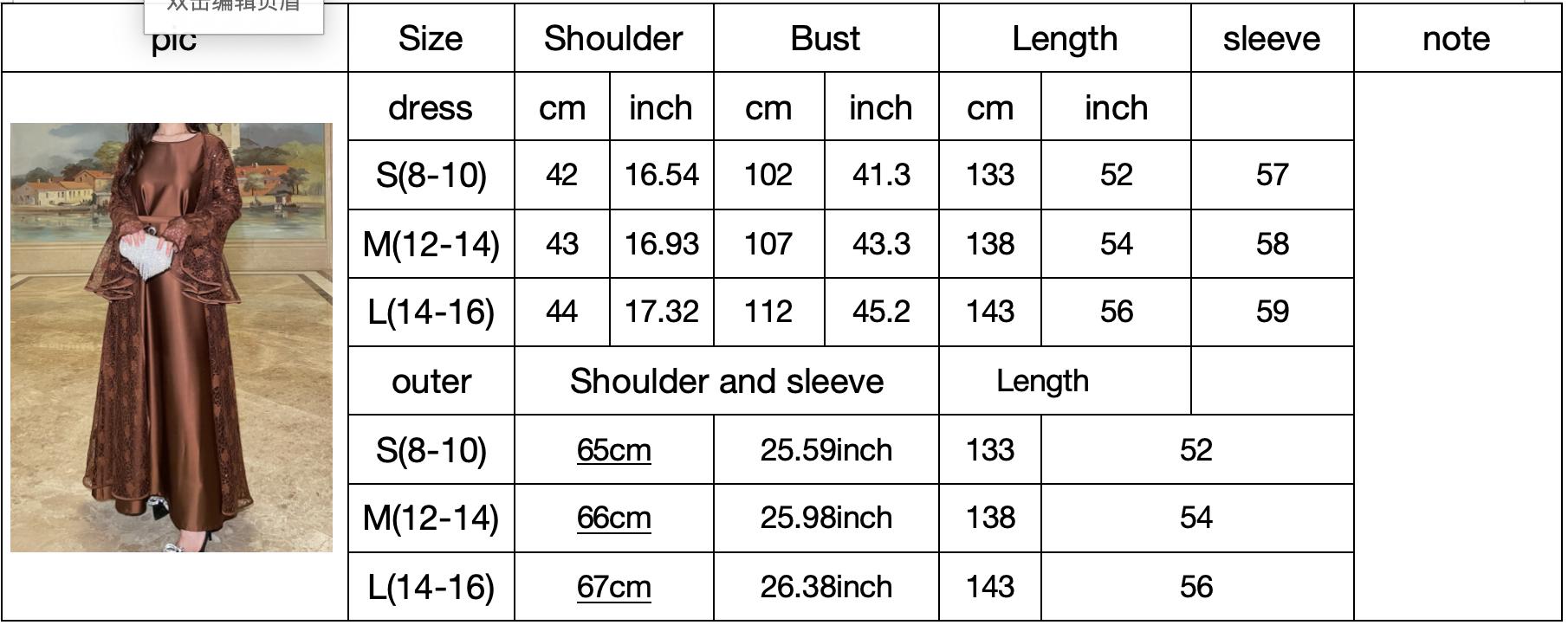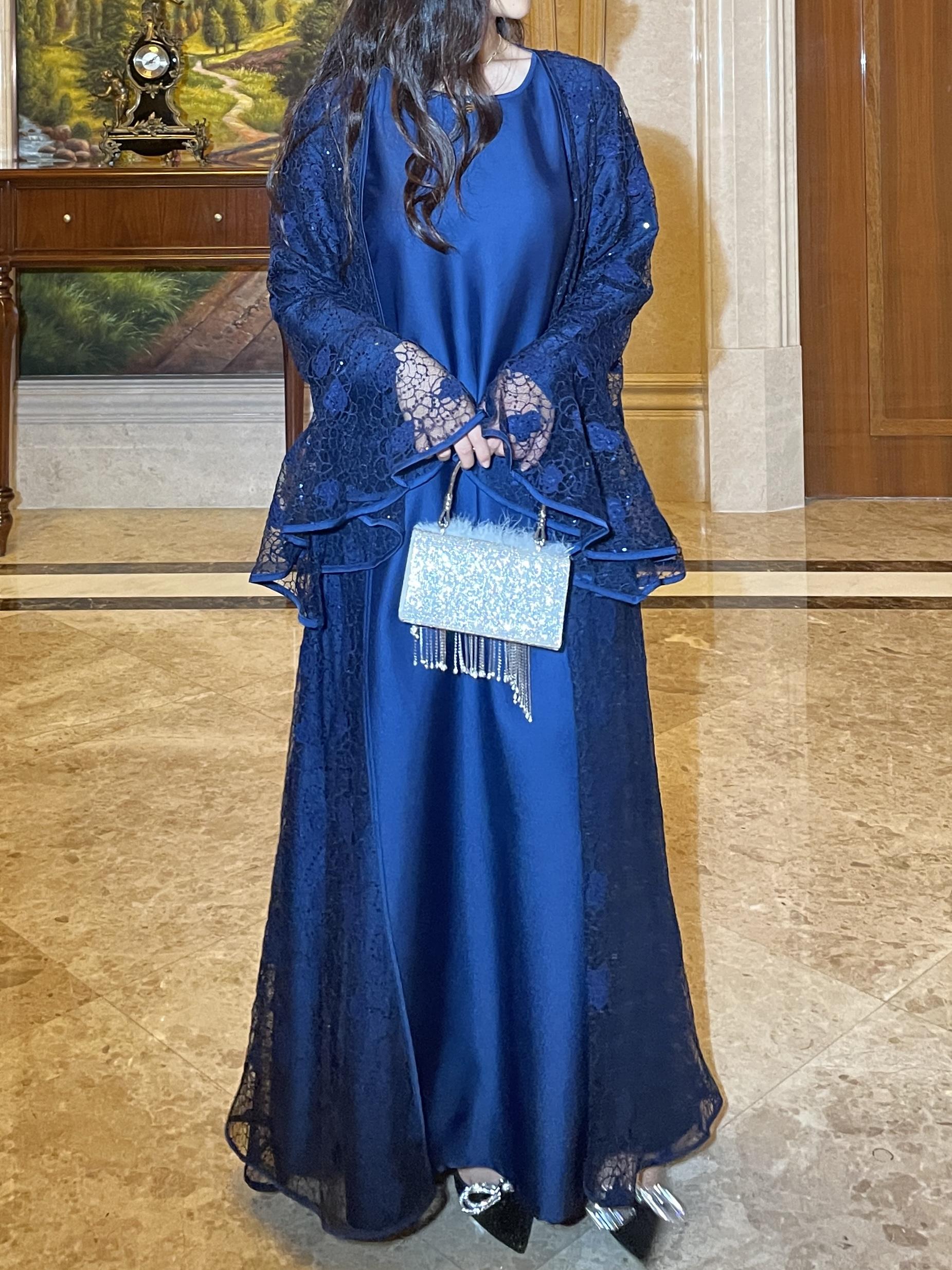 #LY12 Shimmer Lace abaya ,Rose pattern lace net two-piece abaya set women's islamic clothing